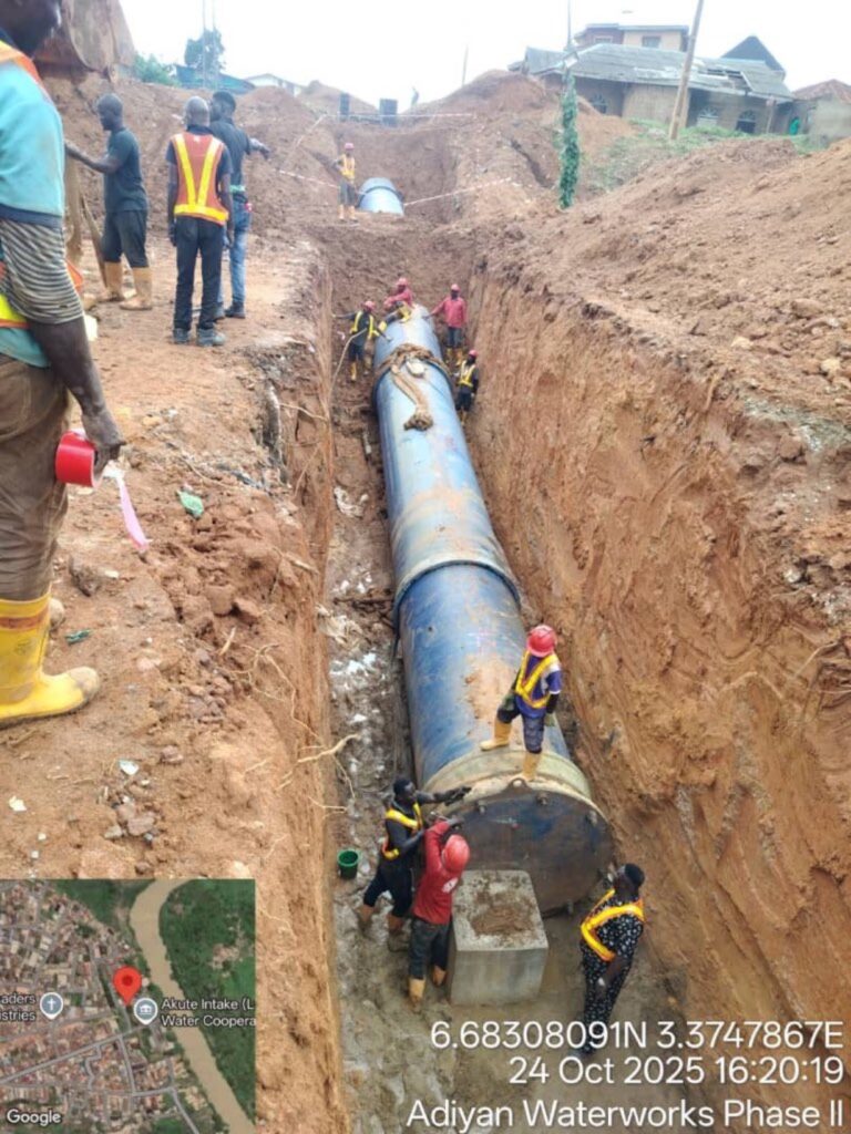 Hon. Tokunbo Wahab, Commissioner for the Ministry of the Environment and Water Resources, shared the update via his official X account. The last Ductile Cast Iron (DCI) pipe, numbered 944, was installed on October 24, 2025, completing the 8km transmission pipeline that now extends to Akute.